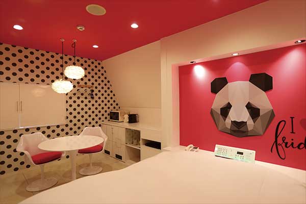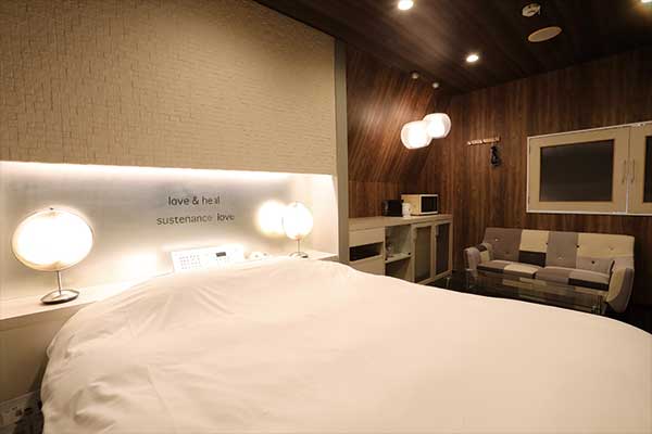 隠れ家ホテル room’sでは、個性豊かな全8部屋をご用意。ショートタイムから宿泊まで幅広いプランを取り揃えており、安心してご利用いただけます。レインボーバスや浴室TVを備えたバスルーム、VOD対応のテレビに加え、電子レンジや持込用冷蔵庫、Wi-Fiなど快適に過ごせる設備も整えています。